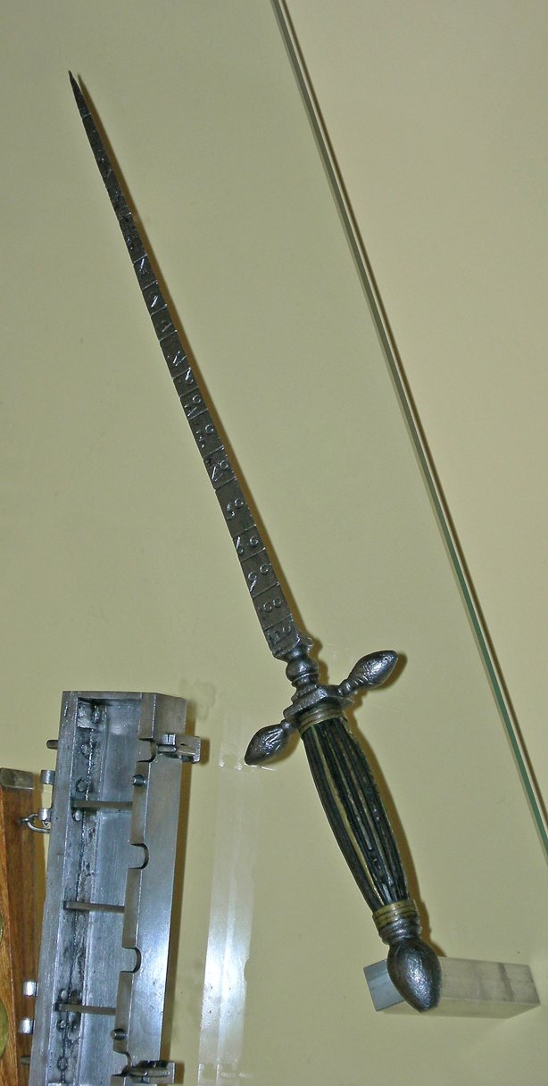 Риски с цифрами служили и для определения объёма пороха. Также была и специальная артиллерийская линейка, с помощью которой производилось прицеливание и рассчитывался необходимый угол возвышения ствола при стрельбе.